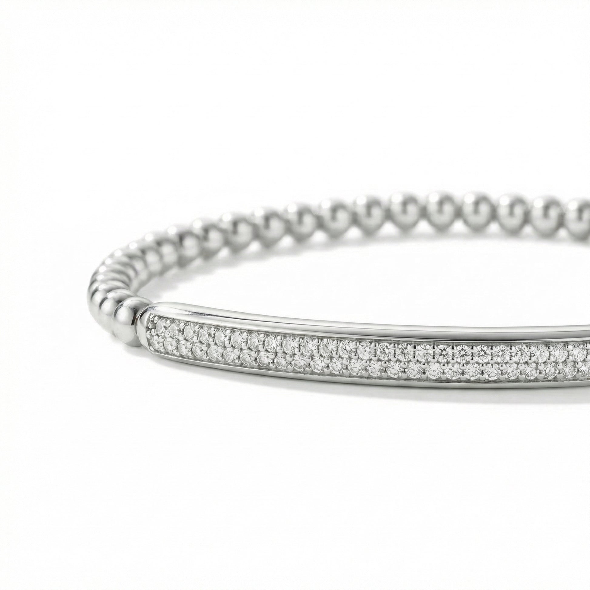 Réalisé en argent massif 925 et serti à la main de 51 pierres D VVS1, il conjugue confort, brillance et savoir-faire artisanal.